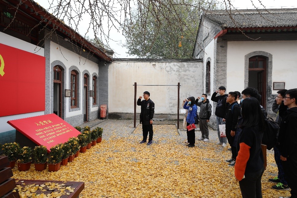 在八路軍辦事處,講解員帶領同學們參觀了八路軍辦事處的辦公室、會議室等地,通過一張張人物照片和一件件展出文物,回顧了黨團結帶領人民進行偉大斗爭的光輝歲月,了解了八路軍辦事處的革命歷史和為民族解放所做出的突出貢獻。同學們深刻體悟老一輩共產黨人的艱苦工作和革命先烈的英勇事跡,在辦事處的一號院內,同學們自發組織集體重溫入黨誓詞。