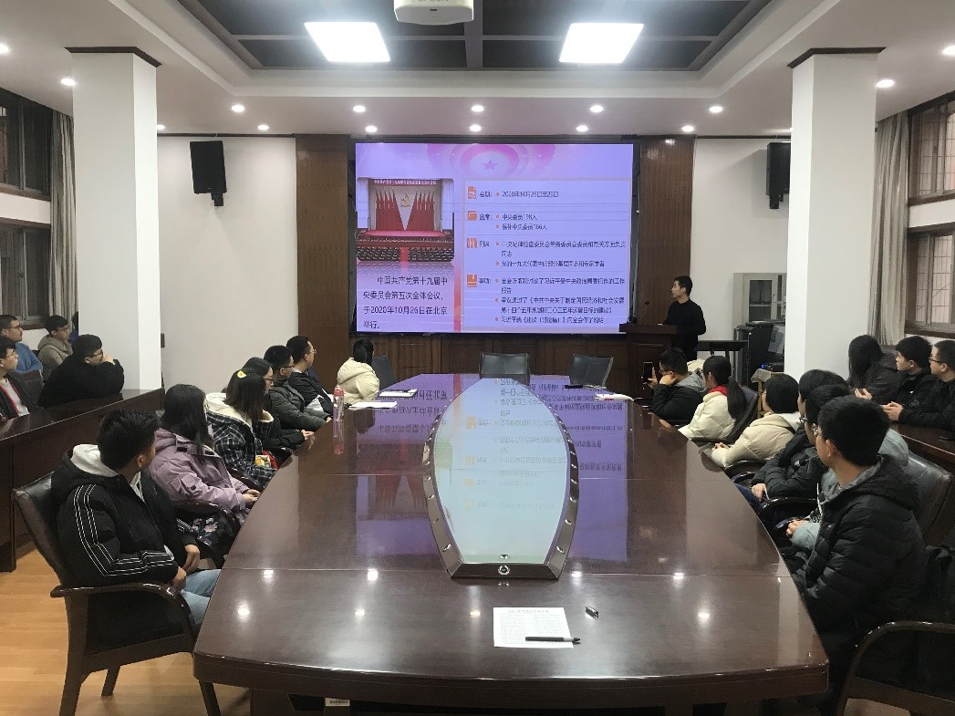 (通訊員:安怡睿)12月20日下午,電子工程學院十九屆五中全會精神系列宣講會在行政樓第三會議室展開,主題為“擘畫新藍圖,開啟新征程”。本次宣講會由碩士2020級第五支部黨支部書記周恩杰主持與匯報,電子工程學院碩士研究生參加了此次宣講活動。