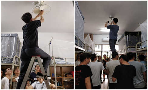 本次主題活動的體驗環節分為四個宿舍衛生打掃相關技能學習及體驗區以及四個宿舍樓公共區日常衛生安全工作體驗區。在四個宿舍體驗區,同學們不但了解了宿舍內務整理的具體標準和流程,還在樓長老師和保潔老師的帶領下真正參與到宿舍整理勞動的各個環節中,從桌椅擺放、用電安全、布線走線到電扇擦拭、空調清洗,同學們都進行了親身體驗,獲益良多。老師們也與同學們共同參與體驗活動,共同學習,與同學們實時分享學習感悟。