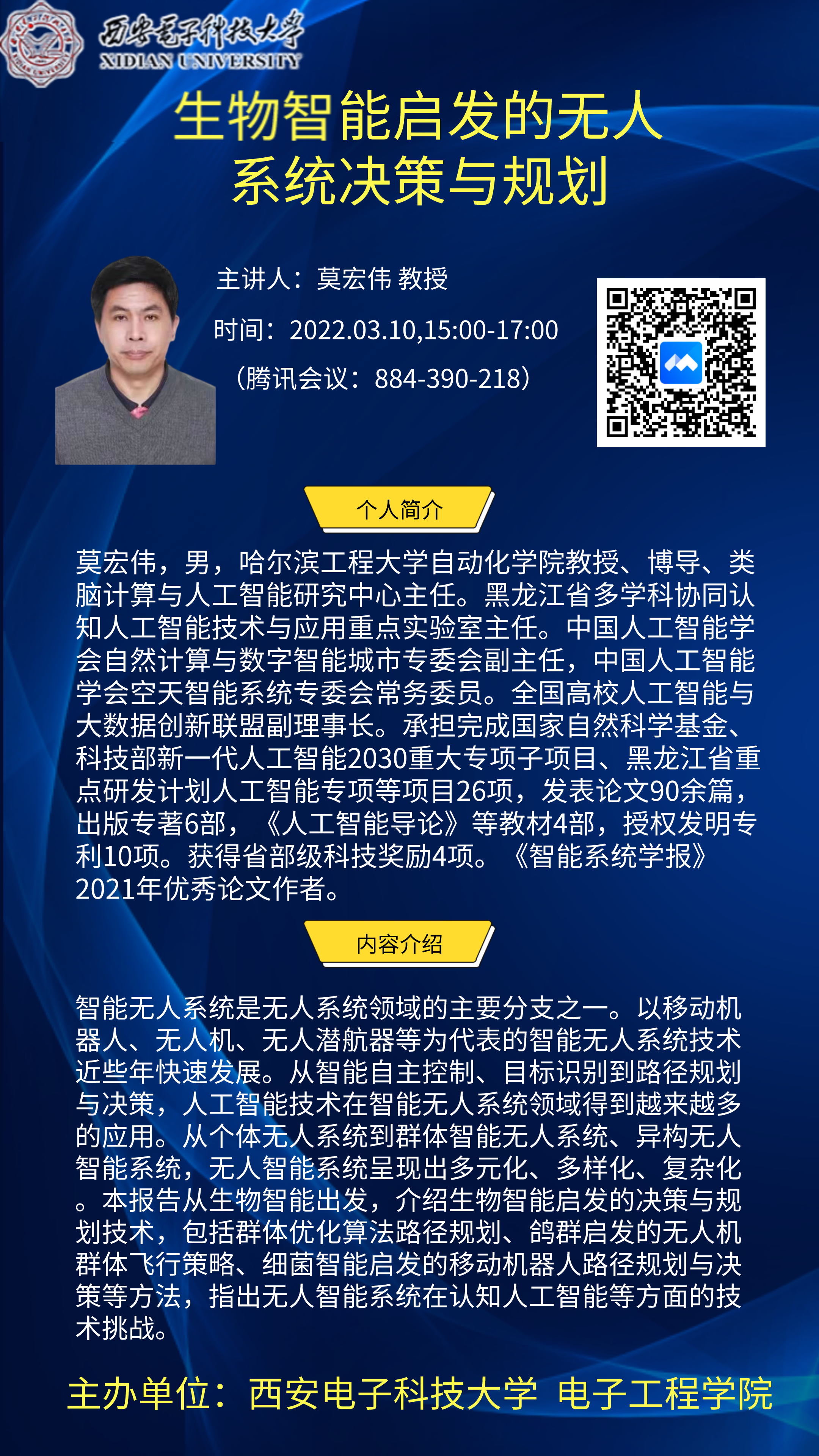 講座:生物智能啟發的無人系統決策與規劃 2022-03-07 10:51:00 瀏覽次數: 責任編輯:鄧鑒 上一篇文章:技術分享:探索手機天線設計之路 下一篇文章:講座:華為全場景AI框架MindSpore核心技術和架構理念