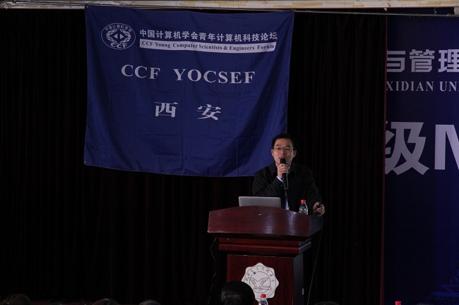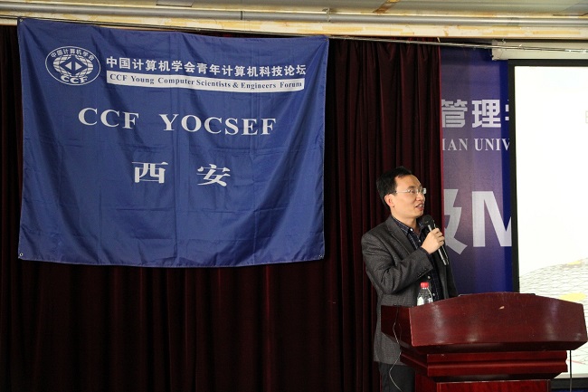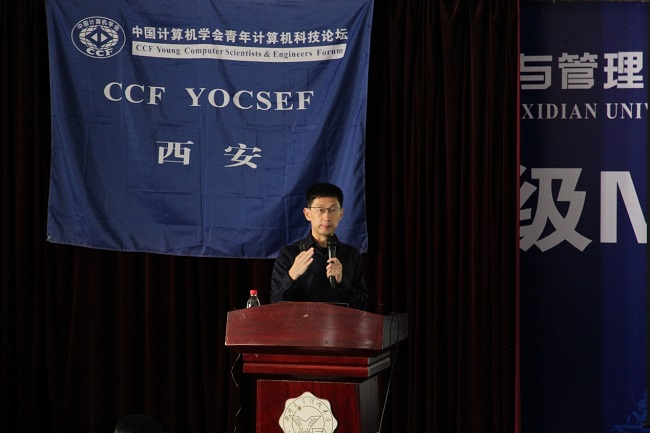 論壇召集人、CCF YOCSEF學術委員會全國副主席苗啟廣教授主持了何海波主編的學術報告。何教授作了題為“Learning with Imbalance”的報告,對當前國際上的研究熱點Imbalance learning以及最新的研究成果進行了系統介紹,作為IEEE Transaction on Neural Networks and Learning Systems期刊的主編,何教授介紹了期刊的情況,并歡迎將高水平的論文投往該刊發表。