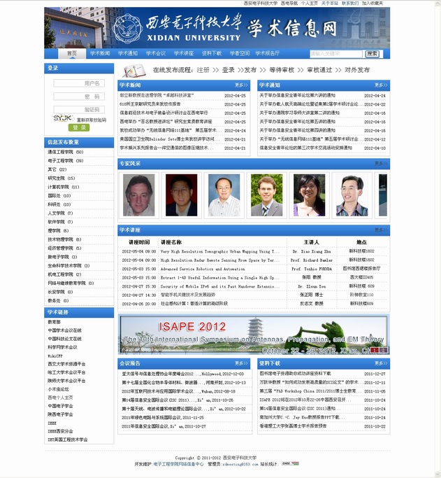 通過西電學術信息網發布學術交流信息可以避免紙質海報展示時間短、不易查詢的弊端,更容易在網絡上傳播,擴大參與人員范圍,提高學術影響力。歡迎各個學院、單位聯系我們發布各類學術交流信息,要求學術信息是真實、具有一定影響力符合學校規定。初期請通過郵件形式把學術信息發送給管理員,由管理員審核負責發布。特別歡迎各個實驗室、單位負責學術海報制作的老師、同學聯系我們!