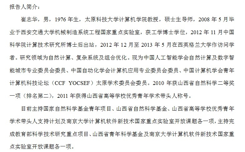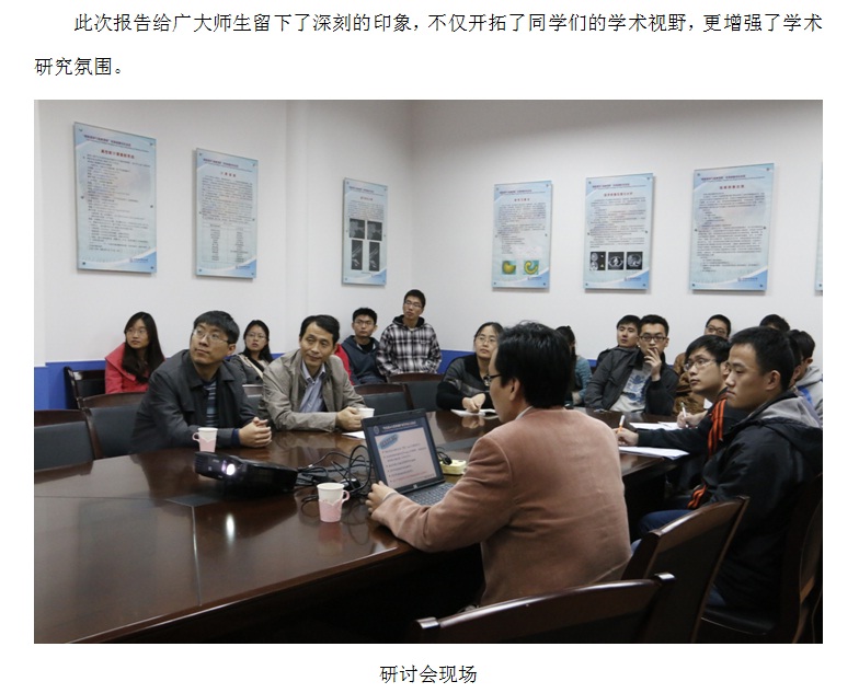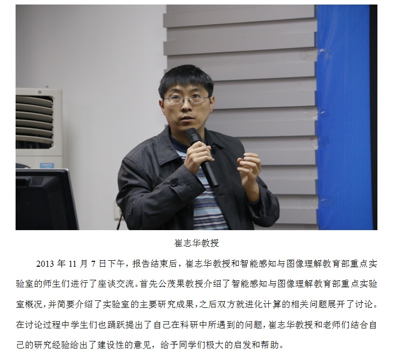 太原科技大學崔志華教授來校進行學術交流與訪問 2013-11-08 17:40:00 瀏覽次數: 上一篇文章:關于召開2014年空間測控通信創新探索基金指南發布會的通知 下一篇文章:英國諾丁漢大學Guoping Qiu教授報告通知