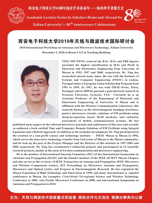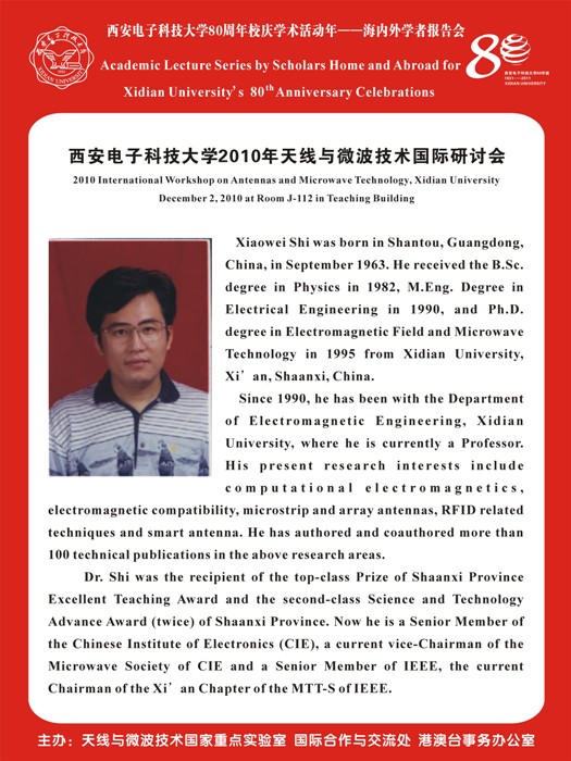 2010天線與微波技術國際研討會日程安排和專家介紹 2010-12-01 22:02:00 瀏覽次數: 2010天線與微波技術國際研討會將于2010年12月2日在西安電子科技大學舉行。(完) 來源:http://oice.xidian.edu.cn/html/news/conference/2010/1130/1211.html 上一篇文章:青年教師出國研修二批名單公布 西電15人入選 下一篇文章:關于召開2011年度國家自然科學基金申請工作安排動員大會的通知