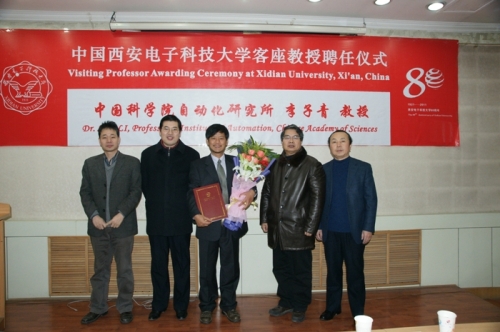 1月4日,在北校區圖書館108室舉行了李子青客座教授的聘任儀式。聘任儀式由國際合作與交流處處長高新波教授主持;電子工程學院副院長石光明教授介紹了李子青博士的個人簡歷和學術成就;電子工程學院院長焦李成教授宣布了學校的聘任決定并向李子青博士頒發了聘書。焦李成院長在致辭中感謝李子青博士接受學校的聘任,同時希望李子青博士能夠為學校的發展貢獻自己的力量。李子青博士表示一定盡自己所能,與我校在圖像識別領域進行深入的研究與合作,為我校的科研、學科建設及海外交流做出自己的貢獻。