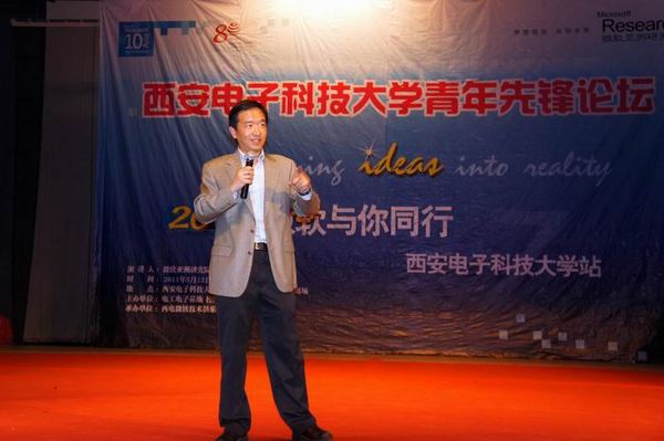 12日晚,由我校團委、微軟技術俱樂部、國家電工電子基地和國際合作與交流處聯合主辦的青年先鋒論壇---“2011年微軟與你同行”在我校南校區大學生活動中心劇場舉行。微軟亞洲研究院常務副院長趙峰博士為我校師生帶來了一場題為“計算與社會:新的機遇和挑戰”的精彩學術報告。報告中趙博士首先介紹了微軟亞洲研究院近年來的發展情況,然后主要報告了微軟公司在新一代多媒體、計算、軟件與系統及硬件與自然用戶界面等領域的最新研究,使同學們大開眼界。400多人的會場座無虛席,聽講過程中互動氣氛熱烈。