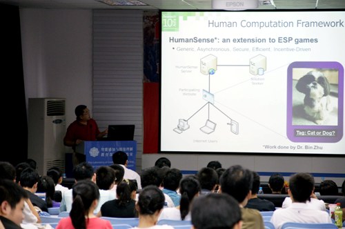 研討會開幕式由我校電子工程學院高新波教授和微軟亞洲研究院梅濤研究員聯合主持,電子工程學院院長焦李成教授致開幕詞。研討會邀請了微軟亞洲研究院院長技術助理、首席研究員李世鵬博士做了題為“The Trends in Multimedia Computing”的報告,李博士在報告中提出了多媒體發展趨勢的6D概念;香港城市大學Chong-wah Ngo教授做了“Editing of Lecture Video by Integrating Picture”的報告,報告了他們在演講視頻處理和內容分析方面的最新進展;美國德州大學圣安東尼奧分校田奇教授做了“Building Contextual Visual Vocabulary for Large-Scale Image Application”的報告,介紹了基于內容的大規模圖像檢索和重排序研究;來自微軟亞洲研究院的主任研究員華先勝博士做了題為“Multimedia Search and Mining: A Collection of demonstrations”的報告,介紹了微軟亞洲研究院在多媒體檢索和挖掘方面的最近技術和應用。另外上海復旦大學路紅教授、我校電子工程學院副院長石光明教授等也出席了此次研討會,另有200多名青年教師和研究生也參加了此次研討會。