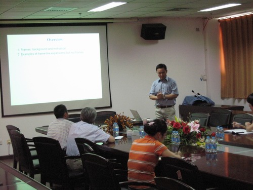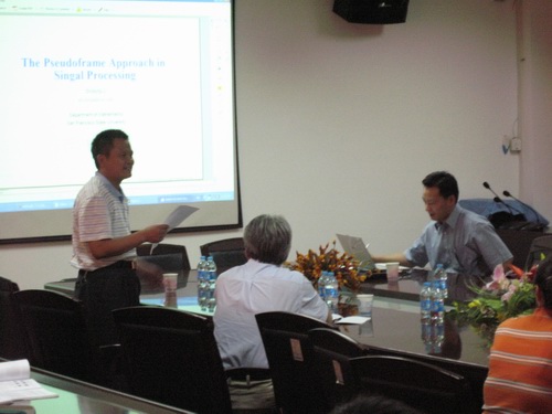 來訪期間,李世東教授為我校師生作了題為“信號處理的偽框架方案(The pseudo frame Approach in Signal Processing)”的學術報告,介紹了他所從事學術領域的現狀及發展前景。此外,在座談會上,雙方還就講學內容中的有關技術細節以及今后進一步加強合作,開展更多的學術交流等問題進行了深入探討。
