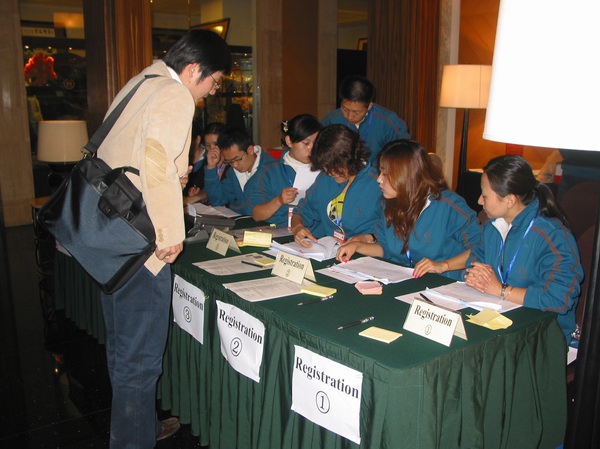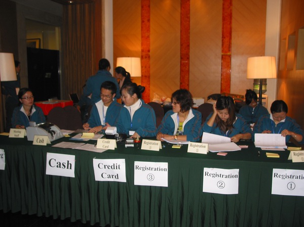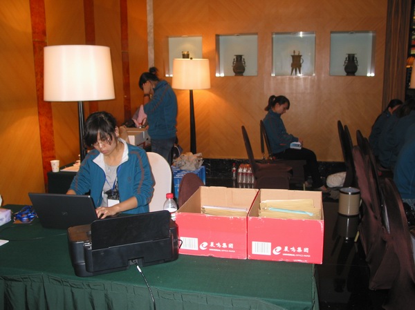 會議注冊組志愿者在會議正式開始前就到達會議現場為參會人員進行注冊
