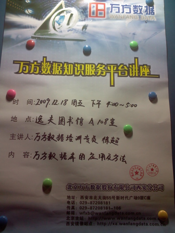 萬方數據知識服務平臺講座 2009-12-17 13:51:00 瀏覽次數: 萬方數據知識服務平臺講座 萬方數據的應用及方法 此次講座主要分為三個部分 1.萬方數據簡介及登陸方式 2.萬方學位全文數據庫的檢索使用 3.怎樣利用萬方新平臺獲取所需信息 在交流當天會有實用禮品相送,熱誠歡迎廣大師生朋友參加。 北京主站:Http://www.wanfangdata.com.cn 北京簽約站點:Http://g.wanfangdata.com.cn 西安鏡像站點:Http://xa.wanfangdata.com.cn 時間:2009-12-18 下午4:00—5:30 地點:北校區逸夫圖書館A108會議室 主講人:萬方數據培訓專員 徐超 來源http://202.117.122.28/content.aspx?id=539 上一篇文章:圖書館電子資源助你考研成功 下一篇文章:關于2010年度國家自然科學基金項目申請與結題申報等有關事項的通告