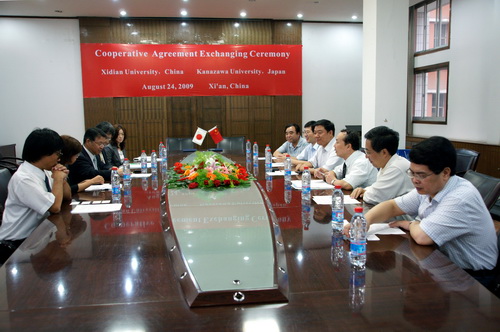 2009年8月24日,日本金澤大學校長助理、工學部部長山崎光悅教授率5人代表團訪問了我校。我校楊銀堂副校長在北校區行政樓第三會議室會見了代表團一行并進行了親切會談。楊銀堂副校長對代表團一行的來訪表示熱烈歡迎,并向客人介紹了我校的歷史沿革和發展概況;山崎光悅校長助理介紹了金澤大學的基本情況;雙方都表示愿意今后進一步拓展兩校之間的合作與交流。參加會談的還有我校國際合作與交流處處長高新波教授、電子工程學院院長焦李成教授、研究生院常務副院長李建東教授、機電工程學院院長賈建援教授等。