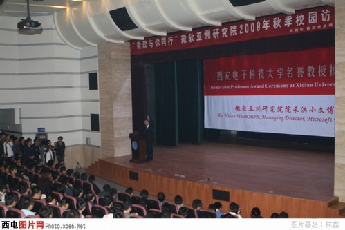 段寶巖校長和洪小文名譽教授分別發表了熱情洋溢的講話。出席聘任儀式的還有,微軟亞洲研究院網絡多媒體組主任研究員、我校兼職教授吳楓博士,微軟亞洲研究院高校關系項目負責人黃婷婷女士,電子工程學院副院長石光明教授,人事處處長楊軍誠教授,國際合作與交流處副處長左愿遠高級工程師,團委書記李波,團委副書記林波,團委副書記朱文凱以及西電微軟俱樂部成員和大學生代表。