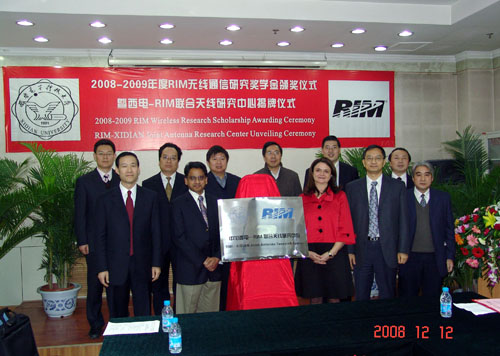 E流網訊(通訊員 劉存利)12月11日-14日,RIM(Research In Motion)公司FR系統設計部首席科學家Nagula Sangary博士、電磁部技術總監(我校校友)Yihong Qi博士、大學研究項目高級顧問Adele Newton女士等一行3人專程來我校參加RIM無線通訊研究獎學金頒獎儀式暨西電-RIM天線聯合研究中心的揭牌儀式。